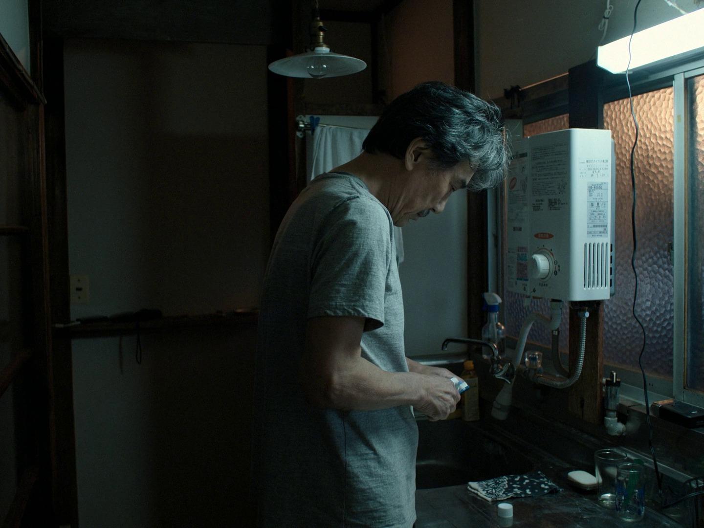 一大早天色微亮,他已經熟練地摺好被褥、刷牙洗臉、替窗台盆栽澆水,接著換上印有「THE TOKYO TOILET」的工作服。