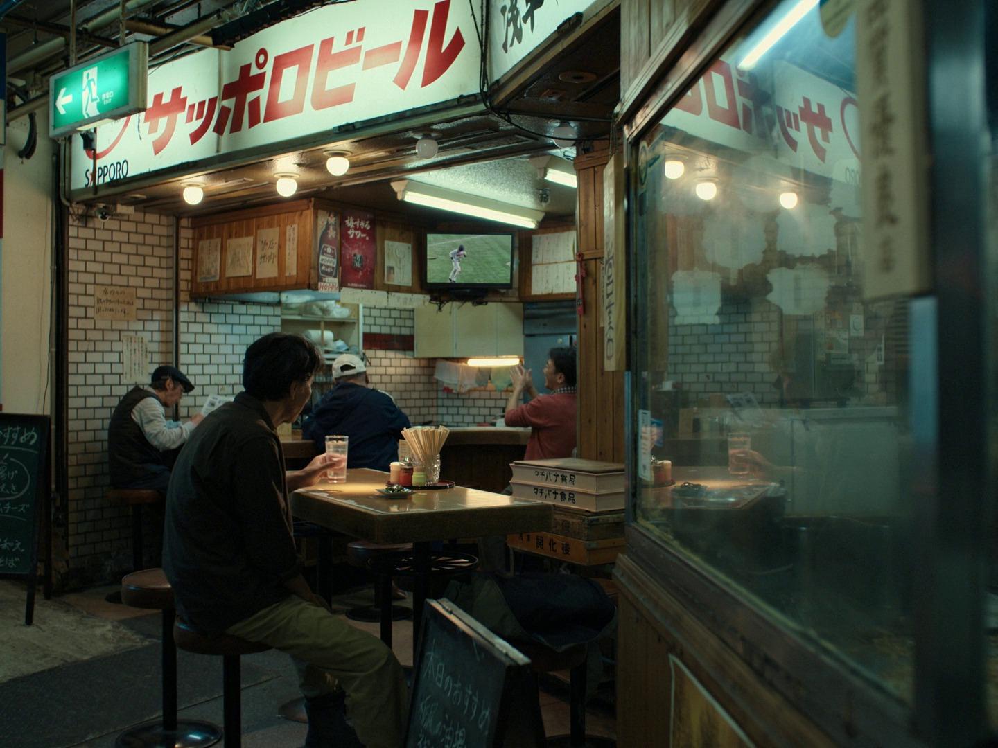 傍晚,他來到淺草地下街那間每天報到的 小餐館,點一份懷舊炒麵。店內總是坐著關注球賽的顧客,在此起彼落的庶民喧鬧聲中,平山安靜地享受一個人的晚餐時光。