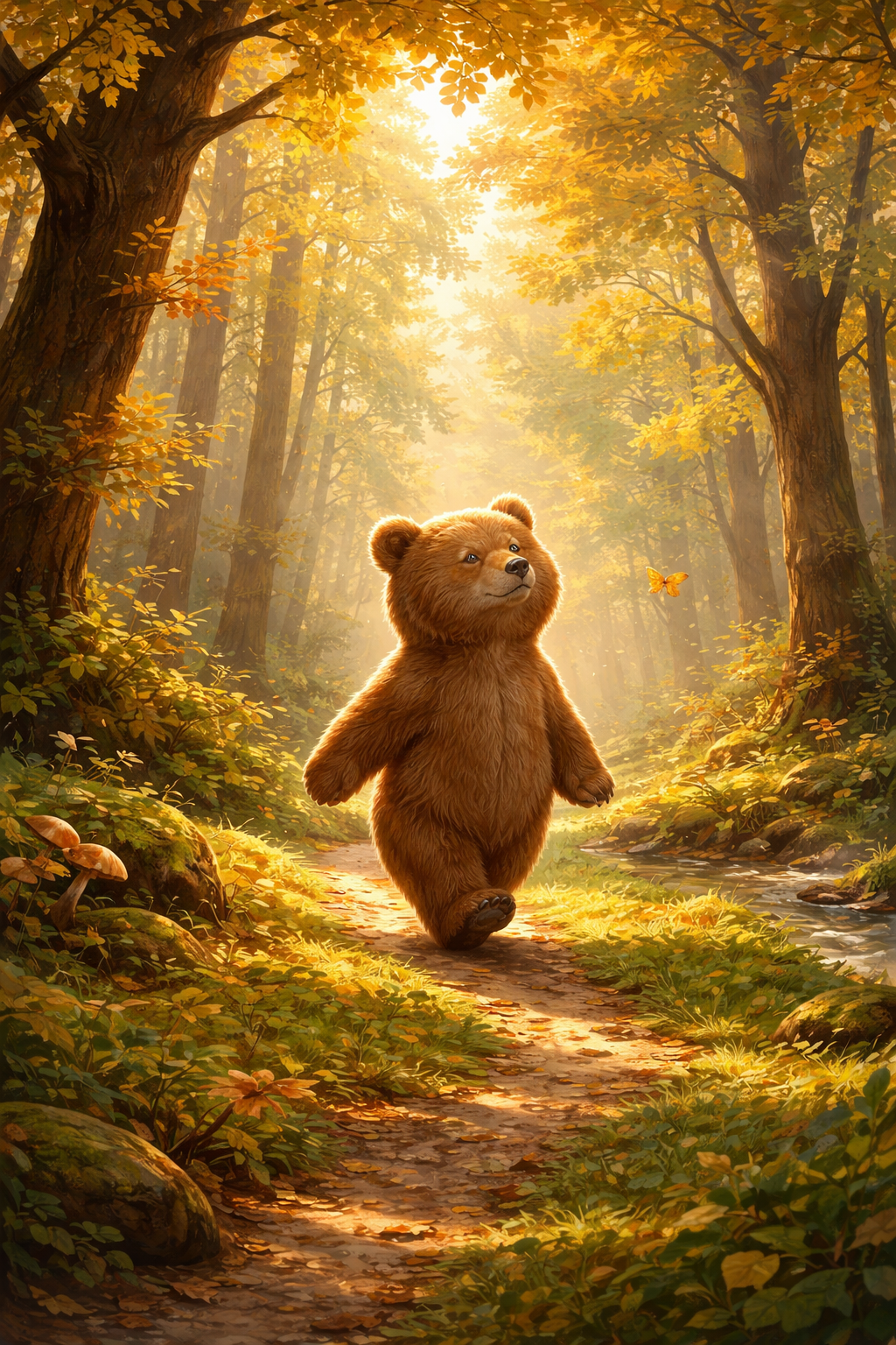 維尼說,這時候最重要的,就是「留意」— 留意灑落的陽光、柔軟的苔蘚、空氣裡的香氣,還有那清爽怡人的秋日微風。